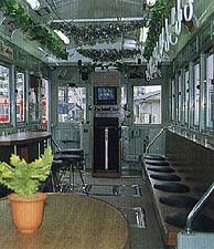 通常の電車を自由に選べますが、なつかしの大阪市電を改造したカラオケ設備のついたパーティ専用電車もあります。