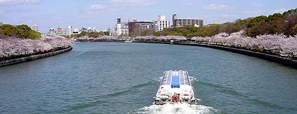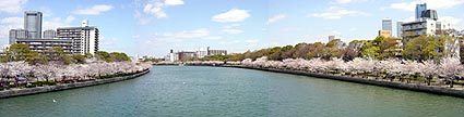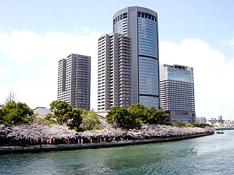 なにわの桜 1 事務所から10分ほど歩くとそこは桜の名所。 天神橋、天満橋、銀橋(桜宮橋)、源八橋と、中之島から大川べりを歩くと、 そこは両岸にズラリと桜の並木が続きます。 満開の桜と、春の日差しを浴びてキラキラ輝く大川。 帝国ホテル大阪やOAPの高層ビル、大阪城などが 桜の海の上ににょっきり浮かぶように建って、 この世のものとは思えぬ何だか不思議な世界に誘い込まれそうでした。 この桜並木の北の端の「桜ノ宮」という地名がこの季節には納得できます。 ちょっと重くて、すみません。