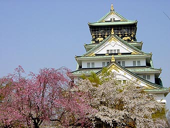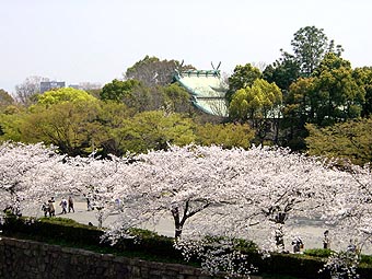 平成の大修理を終えた金ピカの大阪城は、喜色満面で爛漫の春を堪能していました。