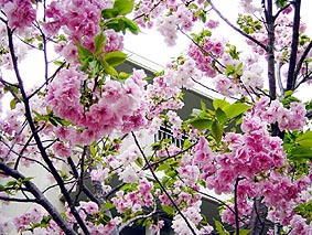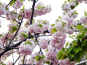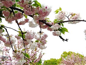 庭に咲いている約100種・375本の八重桜のお花見にと、