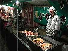 子どもたちの楽しみは露天のお店 「観音さん」の周りには、約300軒程度の露天の屋台が並び、子どもたちはお小遣いを握りしめお目当ての店に向かいます。 いつも思うのですが、時代の流行に敏感で、お店は流行ものをいち早く取り入れ、販売しています。 なにわの祭には必ず出ている名物店もいろいろあり、子どもでなくともわくわくします。