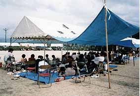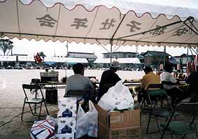 テントの屋根には大字安孫子や安孫子壮年会という文字が大きく書かれていました。