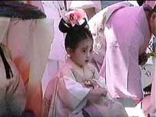 稚児がおもいっきり牛若丸のような化粧をし