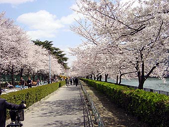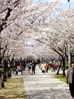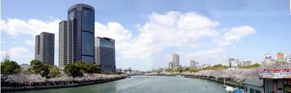 なにわの桜 1 事務所から10分ほど歩くとそこは桜の名所。 天神橋、天満橋、銀橋(桜宮橋)、源八橋と、中之島から大川べりを歩くと、 そこは両岸にズラリと桜の並木が続きます。 満開の桜と、春の日差しを浴びてキラキラ輝く大川。 帝国ホテル大阪やOAPの高層ビル、大阪城などが 桜の海の上ににょっきり浮かぶように建って、 この世のものとは思えぬ何だか不思議な世界に誘い込まれそうでした。 この桜並木の北の端の「桜ノ宮」という地名がこの季節には納得できます。 ちょっと重くて、すみません。