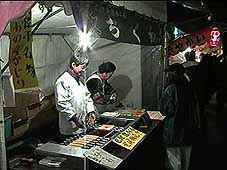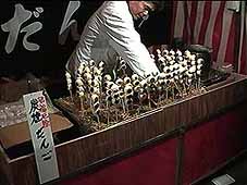 「炭焼きだんご」1本400円、「ちくわのまるかじり」その場で焼いていた