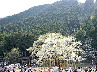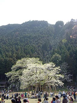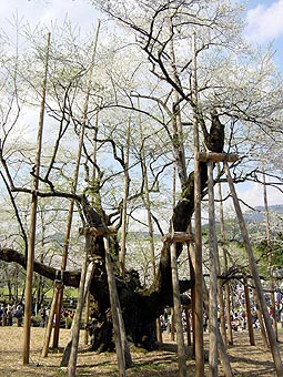 現在、樹高17.2m、枝張り東西23.9m、南北21.2m、幹囲り9.1mあり、花の盛りは4月上旬である。